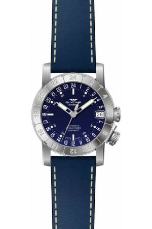 Band For Invicta Airman GL0005, Band Material Leather, Band Color Blue, Band Width 24 mm, Band Length 215 mm, Buckle Type Regular, Clasp Type