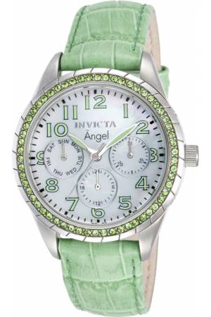 Band For Invicta Angel 12605, Band Material Leather, Band Color Light Green, Band Width 18 mm, Band Length 215 mm, Buckle Type Buckle, Clasp Type Regular