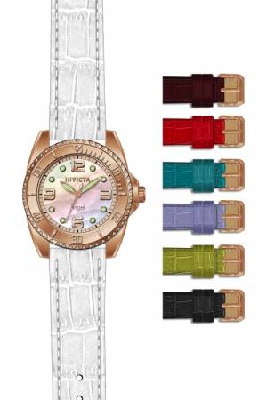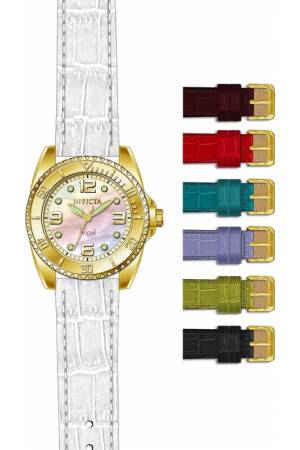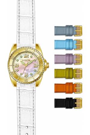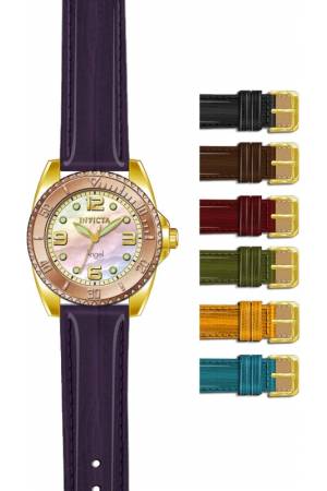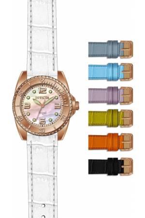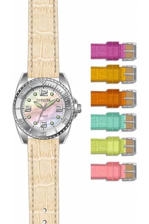 Band For Invicta Angel 15003, Band Material Leather, Band Color Light Beige, Fuchsia, Yellow, Orange, Light Blue, Light Green, Pink, Band Width 18 mm, Band Length 205 mm, Buckle Type Buckle, Clasp Type Regular