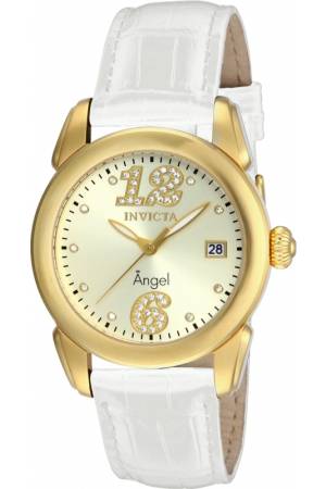 Band For Invicta Angel 15287, Band Material Leather, Band Color White, Band Width 20 mm, Band Length 215 mm, Buckle Type Buckle, Clasp Type Regular