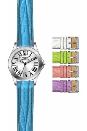 Band For Invicta Angel 16021, Band Material Leather, Band Color Blue, Band Width 16 mm, Band Length 206 mm, Buckle Type Buckle, Clasp Type Regular