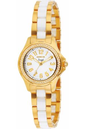 Band For Invicta Angel 1780, Band Material Ceramic, Stainless Steel, Band Color White, Gold, Band Width 14 mm, Band Length 218 mm, Buckle Type Butterfly, Clasp Type Butterfly