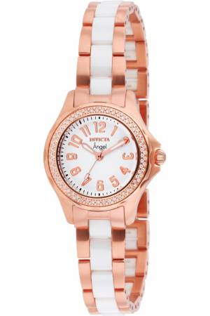 Band For Invicta Angel 1780, Band Material Ceramic, Stainless Steel, Band Color White, Gold, Band Width 14 mm, Band Length 218 mm, Buckle Type Butterfly, Clasp Type Butterfly