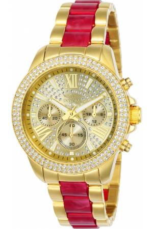 Band For Invicta Angel 24126, Band Material Stainless Steel, Band Color Gold, Red, Band Width 18 mm, Band Length 190 mm, Buckle Type Fold over safety, Clasp Type Regular