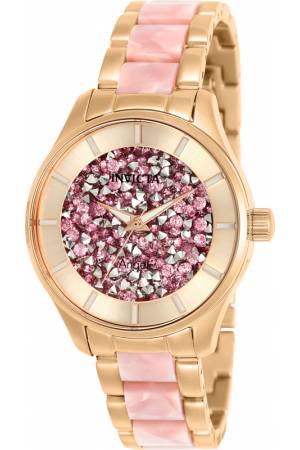 Band For Invicta Angel 25244, Band Material Resin, Stainless Steel, Band Color Pink, Rose Gold, Band Width 16 mm, Band Length 175 mm, Buckle Type Fold over safety, Clasp Type Regular