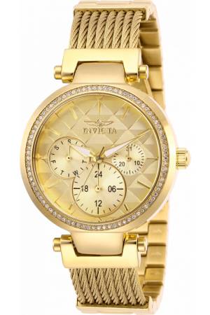 Band For Invicta Angel 28918, Band Material Cable, Stainless Steel, Band Color Gold, Band Width 18 mm, Band Length 170 mm, Buckle Type Fold over push button, Clasp Type Regular