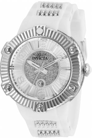 Band For Invicta Angel 29519, Band Material Polyurethane, Silicone, Stainless Steel, Band Color White, Steel, Band Width 32 mm, Band Length 207.5 mm, Buckle Type Buckle, Clasp Type Regular