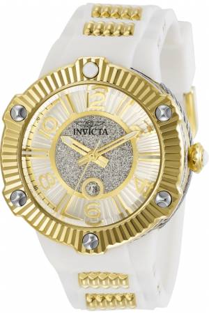 Band For Invicta Angel 29521, Band Material Stainless Steel, Silicone, Polyurethane, Band Color Gold, White, Band Width 32 mm, Band Length 207.5 mm, Buckle Type Buckle, Clasp Type Regular