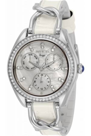 Band For Invicta Angel 31205, Band Material Leather, Stainless Steel, Band Color Silver, White, Band Width 17 mm, Band Length 190 mm, Buckle Type Buckle, Clasp Type Regular