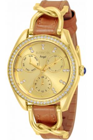 Band For Invicta Angel 31208, Band Material Leather, Band Color Brown, Band Width 17 mm, Band Length 190 mm, Buckle Type Buckle, Clasp Type Regular