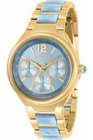 Band For Invicta Angel 32079, Band Material Resin, Stainless Steel, Band Color Blue, Gold, Band Width 19 mm, Band Length 185 mm, Buckle Type Fold over safety, Clasp Type Regular