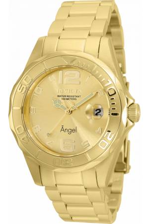 Band For Invicta Angel 36054, Band Material Stainless Steel, Band Color Gold, Band Width 18 mm, Band Length 195 mm, Buckle Type Fold over safety, Clasp Type