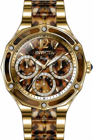 Band For Invicta Angel 40388, Band Material Resin, Stainless Steel, Band Color Brown, Gold, Band Width 18 mm, Band Length 175 mm, Buckle Type Fold over push button, Clasp Type