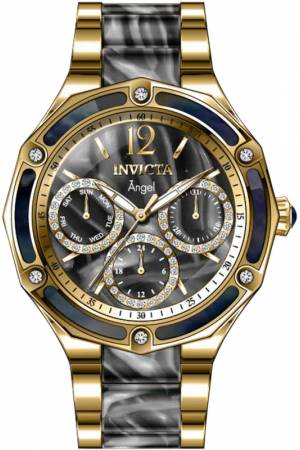 Band For Invicta Angel 40392, Band Material Resin, Stainless Steel, Band Color Black, Gold, Band Width 18 mm, Band Length 175 mm, Buckle Type Fold over push button, Clasp Type