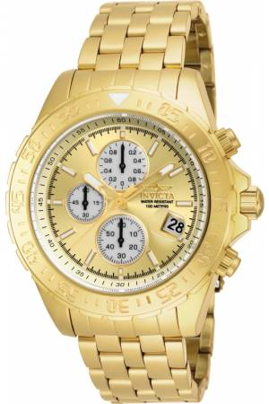 Band For Invicta Aviator 18854, Band Material Stainless Steel, Band Color Gold, Band Width 22 mm, Band Length 215 mm, Buckle Type Fold over safety, Clasp Type Foldover, Safety