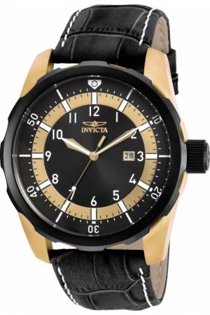 Band For Invicta Aviator 19564, Band Material Leather, Band Color Black, Band Width 26 mm, Band Length 215 mm, Buckle Type Buckle, Clasp Type Regular