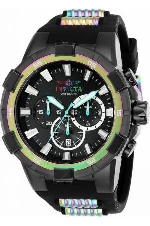Band For Invicta Aviator 23691, Band Material Silicone, Stainless Steel, Band Color Iridescent, Black, Band Width 30 mm, Band Length 210 mm, Buckle Type Buckle, Clasp Type Regular