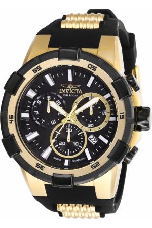 Band For Invicta Aviator 27350, Band Material Silicone, Stainless Steel, Band Color Black, Gold, Band Width 30 mm, Band Length 205 mm, Buckle Type Buckle, Clasp Type Regular