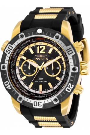 Band For Invicta Aviator 29919, Band Material Stainless Steel, Silicone, Polyurethane, Band Color Gold, Black, Band Width 26 mm, Band Length 225 mm, Buckle Type Buckle, Clasp Type Regular
