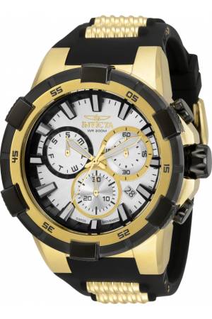 Band For Invicta Aviator 33289, Band Material Silicone, Stainless Steel, Band Color Black, Gold, Band Width 30 mm, Band Length 205 mm, Buckle Type Buckle, Clasp Type Buckle