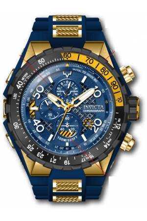 Band For Invicta Aviator 40125, Band Material Cable, Silicone, Band Color Blue, Gold, Band Width 56 mm, Band Length 210 mm, Buckle Type Buckle, Clasp Type