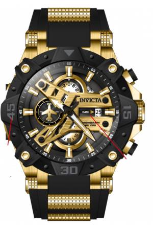 Band For Invicta Aviator 40183, Band Material Silicone, Stainless Steel, Band Color Black, Gold, Band Width 31 mm, Band Length 242 mm, Buckle Type Buckle, Clasp Type