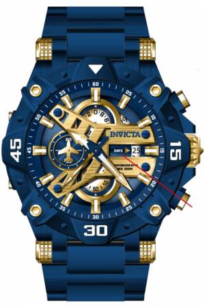 Band For Invicta Aviator 40188, Band Material Stainless Steel, Band Color Blue, Gold, Band Width 31 mm, Band Length 197 mm, Buckle Type Fold over safety, Clasp Type