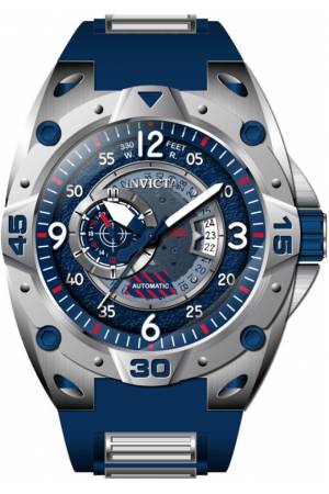 Band For Invicta Aviator 40281, Band Material Silicone, Stainless Steel, Band Color Blue, Steel, Band Width 30 mm, Band Length 210 mm, Buckle Type Buckle, Clasp Type