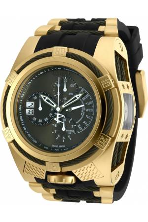 Band For Invicta Bolt 19426, Band Material Silicone, Stainless Steel, Band Color Dark Green, Gold, Band Width 38 mm, Band Length 210 mm, Buckle Type Buckle, Clasp Type Regular