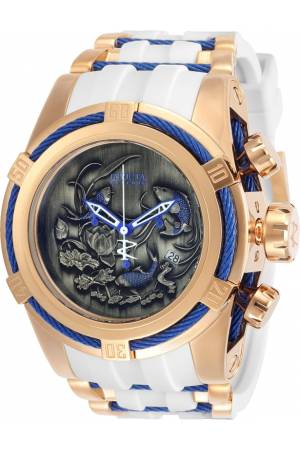 Band For Invicta Bolt 22236, Band Material Stainless Steel, Polyurethane, Band Color Rose Gold, Blue, White, Band Width 36.8 mm, Band Length 229 mm, Buckle Type Buckle, Clasp Type Regular