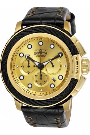 Band For Invicta Bolt 24442, Band Material Leather, Band Color Black, Gold, Band Width 26 mm, Band Length 210 mm, Buckle Type Buckle, Clasp Type Regular