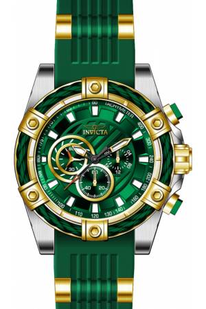 Band For Invicta Bolt 25764, Band Material Silicone, Stainless Steel, Band Color Green, Gold, Band Width 26 mm, Band Length 200 mm, Buckle Type Buckle, Clasp Type Regular