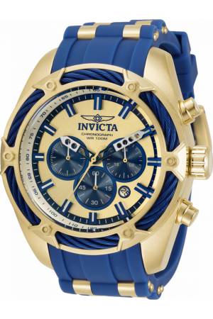 Band For Invicta Bolt 31433, Band Material Polyurethane, Stainless Steel, Band Color Blue, Gold, Band Width 26 mm, Band Length 210 mm, Buckle Type Buckle, Clasp Type Regular