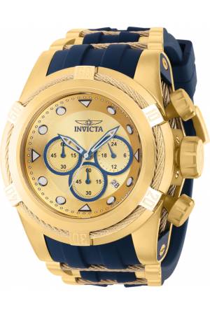Band For Invicta Bolt 37196, Band Material Silicone, Stainless Steel, Band Color Blue, Gold, Band Width 35 mm, Band Length 210 mm, Buckle Type Buckle, Clasp Type
