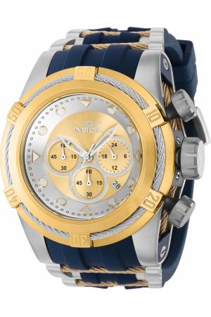 Band For Invicta Bolt 37198, Band Material Silicone, Stainless Steel, Band Color Blue, Gold, Steel, Band Width 35 mm, Band Length 210 mm, Buckle Type Buckle, Clasp Type