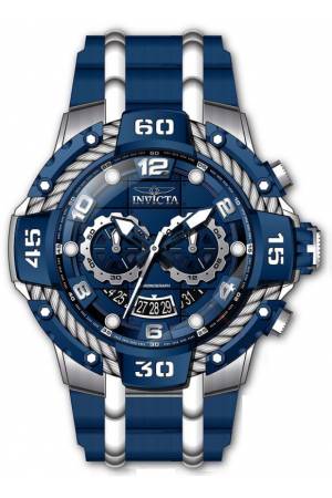 Band For Invicta Bolt 37653, Band Material Stainless Steel, Band Color Silver, Blue, Band Width 32 mm, Band Length 190 mm, Buckle Type Fold over safety, Clasp Type
