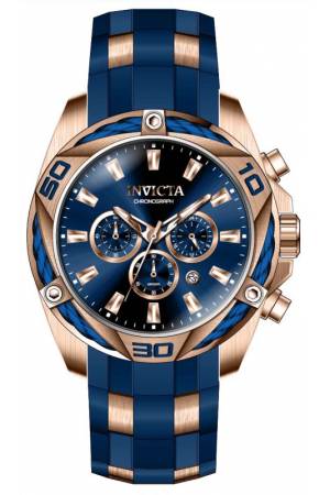 Band For Invicta Bolt 40318, Band Material Silicone, Stainless Steel, Band Color Blue, Rose Gold, Band Width 26 mm, Band Length 210 mm, Buckle Type Buckle, Clasp Type