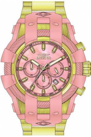 Band For Invicta Bolt 43221, Band Material Stainless Steel, Band Color Gold, Band Width 28.7 mm, Band Length 210 mm, Buckle Type Fold over safety, Clasp Type Deployment, Safety