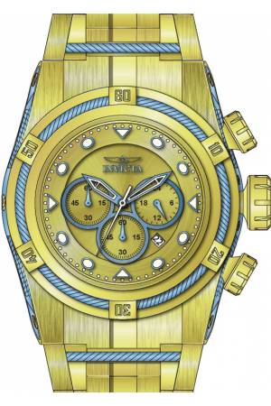 Band For Invicta Bolt 43350, Band Material Stainless Steel, Band Color Light Blue, Gold, Band Width 35 mm, Band Length 210 mm, Buckle Type Fold over safety, Clasp Type Deployment, Safety