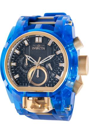 Band For Invicta Bolt 46476, Band Material Silicone, Stainless Steel, Band Color Blue, Gold, Band Width 34 mm, Band Length 210 mm, Buckle Type Buckle, Clasp Type