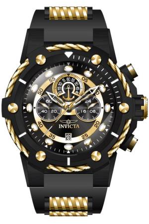 Band For Invicta Bolt 46609, Band Material Silicone, Stainless Steel, Band Color Black, Gold, Band Width 30 mm, Band Length 190 mm, Buckle Type Buckle, Clasp Type