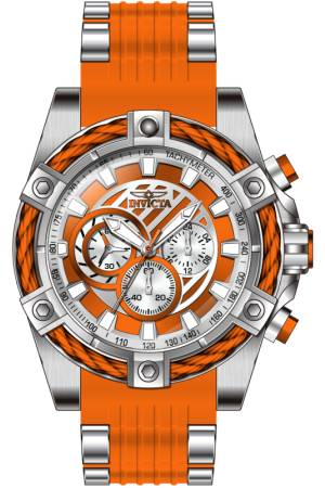 Band For Invicta Bolt 47055, Band Material Silicone, Stainless Steel, Band Color Orange, Steel, Band Width 26 mm, Band Length 200 mm, Buckle Type Buckle, Clasp Type Regular