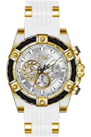 Band For Invicta Bolt 50602, Band Material Silicone, Stainless Steel, Band Color White, Gold, Band Width 26 mm, Band Length 200 mm, Buckle Type Buckle, Clasp Type Regular