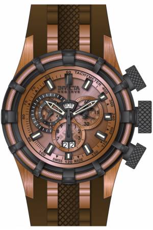 Band For Invicta Bolt 80666, Band Material Stainless Steel, Polyurethane, Band Color Rose Gold, Brown, Band Width 32 mm, Band Length 231 mm, Buckle Type Fold over safety, Clasp Type Buckle, Foldover