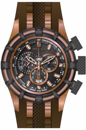 Band For Invicta Bolt 80667, Band Material Stainless Steel, Polyurethane, Band Color Rose Gold, Brown, Band Width 32 mm, Band Length 231 mm, Buckle Type Fold over safety, Clasp Type Buckle, Foldover