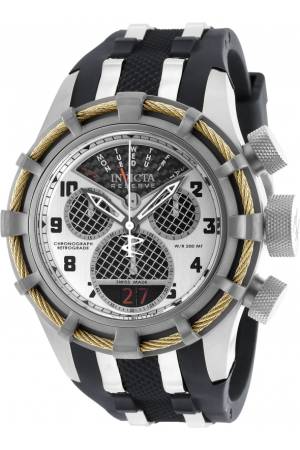 Band For Invicta Bolt 90022, Band Material Stainless Steel, Polyurethane, Band Color Steel, Black, Band Width 26 mm, Band Length 210 mm, Buckle Type Buckle, Clasp Type Regular