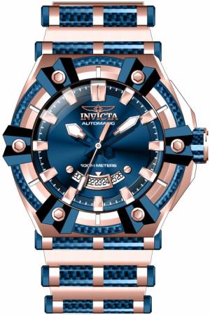 Band For Invicta Carbon Hawk 37296, Band Material Glass Fiber, Stainless Steel, Band Color Blue, Rose Gold, Band Width 32 mm, Band Length 190 mm, Buckle Type Fold over safety, Clasp Type