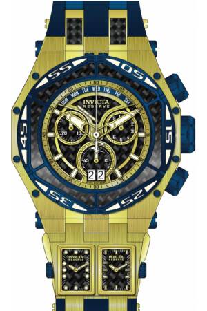 Band For Invicta Carbon Hawk 38893, Band Material Carbon Fiber, Silicone, Stainless Steel, Band Color Blue, Black, Gold, Band Width 32 mm, Band Length 210 mm, Buckle Type Buckle, Clasp Type