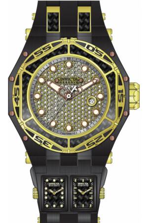 Band For Invicta Carbon Hawk 38912, Band Material Carbon Fiber, Silicone, Stainless Steel, Band Color Black, Gold, Band Width 32 mm, Band Length 210 mm, Buckle Type Buckle, Clasp Type