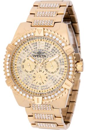 Band For Invicta Celestial 48561, Band Material Crystal, Stainless Steel, Band Color White, Gold, Band Width 22 mm, Band Length 180 mm, Buckle Type Fold over push button, Clasp Type Push Button
